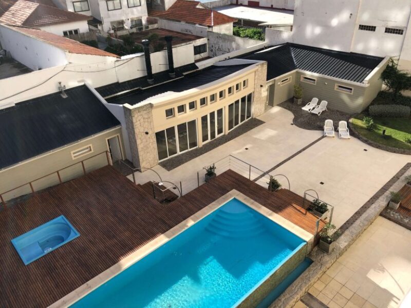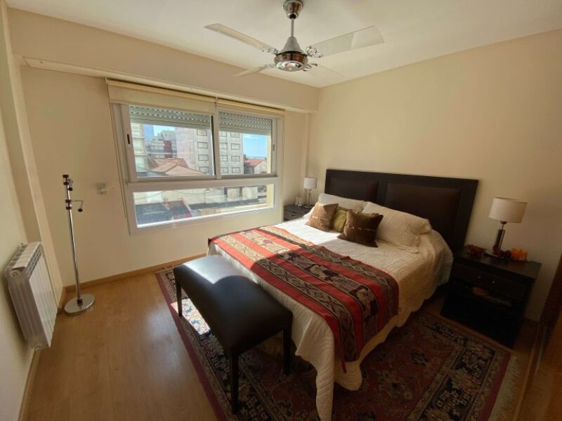 – Dormitorio con ventanal al contrafrente, con vistas a la piscina y quincho del edificio.
