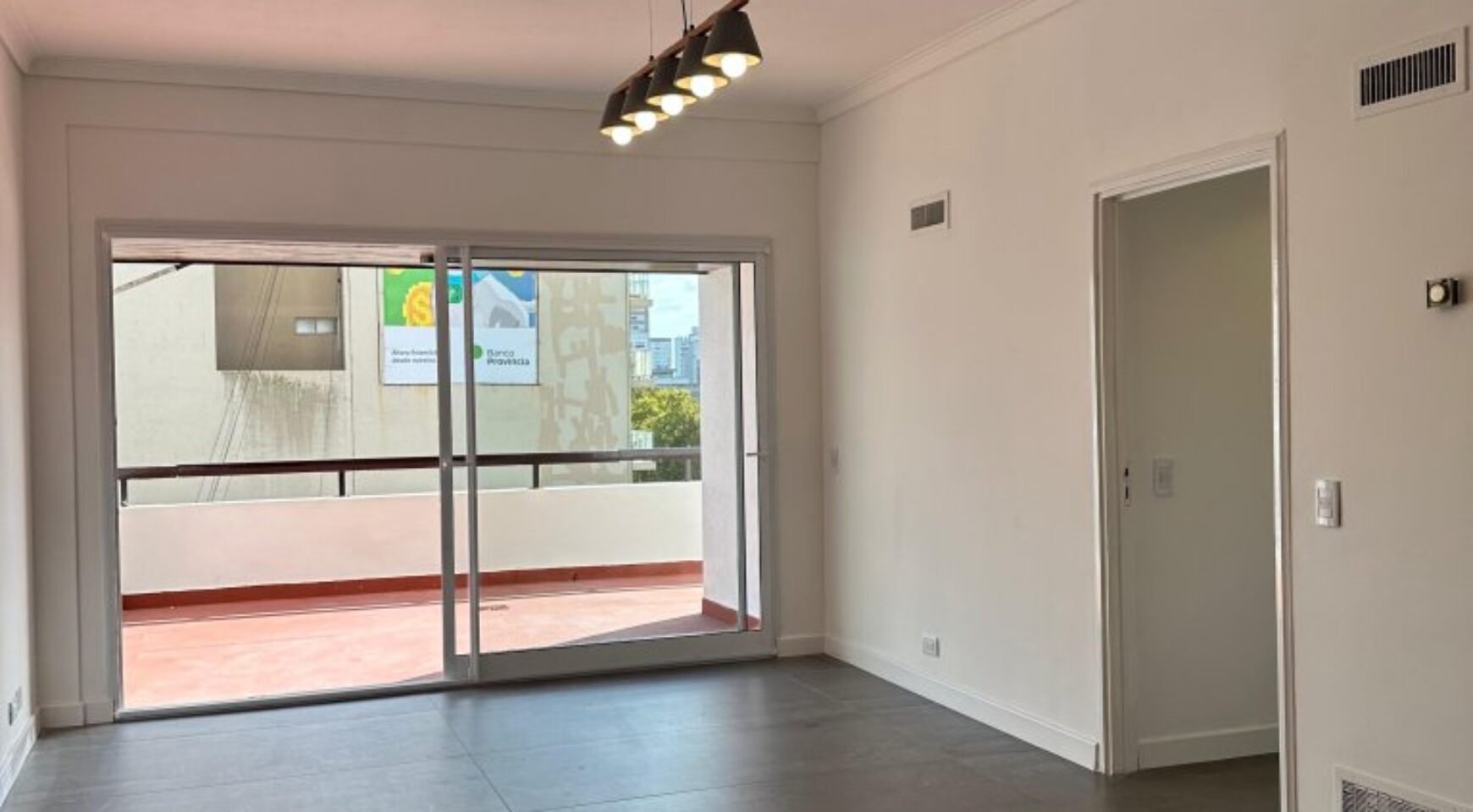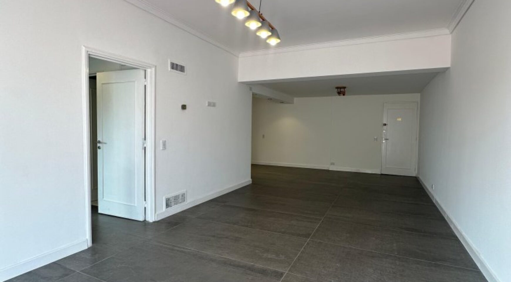 • Living en “L” a la calle con salida a balcón terraza. Superficie total del ambiente: 9.1 x 3.5 m + 3 x 2 m. Pisos de porcelanato, sistema de calefacción por aire, y aberturas DVH que aseguran confort térmico y acústico.
